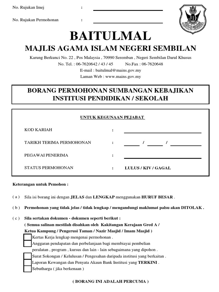 Baitulmal Maiwp Permohonan Bantuan Am Persekolahan Baitulmal Tahun 2020 Bagi Sekolah Luar Wilayah Telah Dibuka Borang Permohonan Bantuan Am Persekolahan Boleh Didapati I Semua Pusat Agihan Zakat Baitulmal Paza Ii